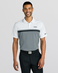 Built from at least 75% recycled polyester fabric, Nike scores a sustainable victory with this polo that stands out with colorblocking on the front and Dri-FIT moisture management technology. Details include an anti-curl flat knit collar, two-button placket with dyed-to-match buttons and rolled-forward shoulder seams for easy movement. A contrast heat transfer Swoosh logo is on the left sleeve. Made of 4-ounce, 100% polyester Dri-FIT fabric.