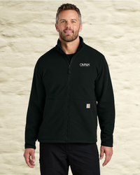 From jobsite to backyard barbeque, Carhartt Textured Fleece outerwear delivers easy-wearing warmth and everyday versatility. 7.3-ounce, 100% polyester. Zip-through collar, Full-length center front zipper. Two lower front zippered pockets, Carhartt label sewn on left pocket. Elastic binding cuffs, Adjustable drop tail hem, Relaxed fit.