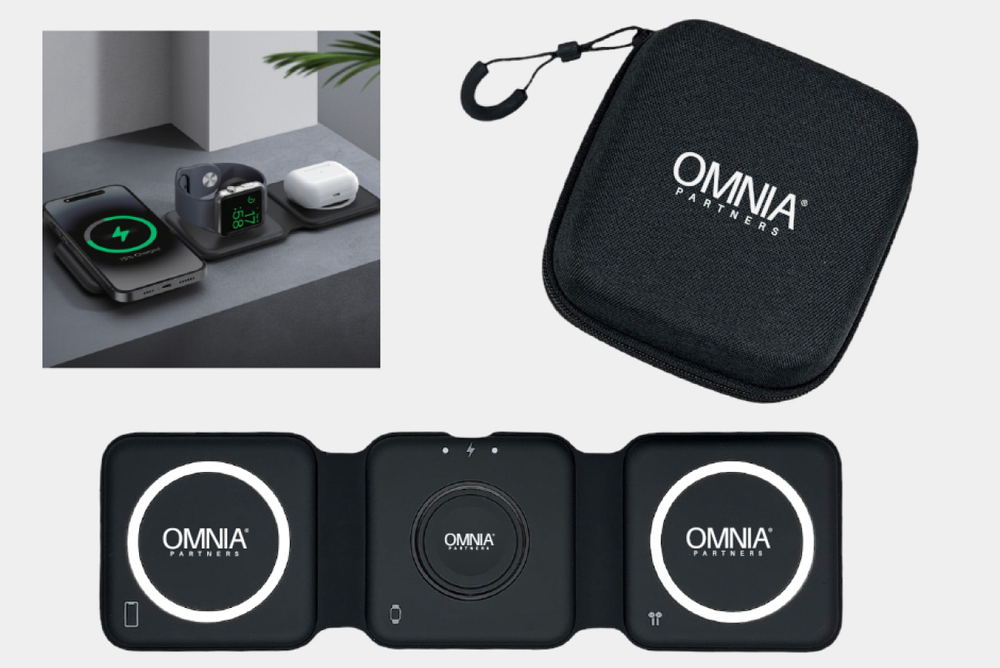 The original and patented charger that changed on-the-go charging forever! Our best-selling Trio charger now includes a 20W charging block and hard shell travel case. It is ready-to-use right out of the box and offers exceptional charging versatility and portability. It packs light, so you can travel with ease and keep your devices charged wherever your adventure takes you! Showcase your logo brilliantly on all 3 charging panels and travel case.