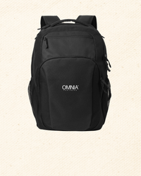 Port Authority Transport Backpack 600D x 300D polyester with PVC backing Dedicated back laptop compartment Zippered main compartment Front zippered pocket with organizer panel Zippered valuables pocket at top Two side mesh pockets Padded shoulder straps Web daisy chain attachment system Padded web carry handle Two plastic D rings Laptop sleeve dimensions: 12"h x 17.7"w x 1.6"d; fits most 16" laptops Dimensions: 18"h x 13"w x 7.5"d Capacity: 1,769 cu. in./29 L Weight: 0.8 lbs./0.4 kg Note: Bags not intended for use by children 12 and under.