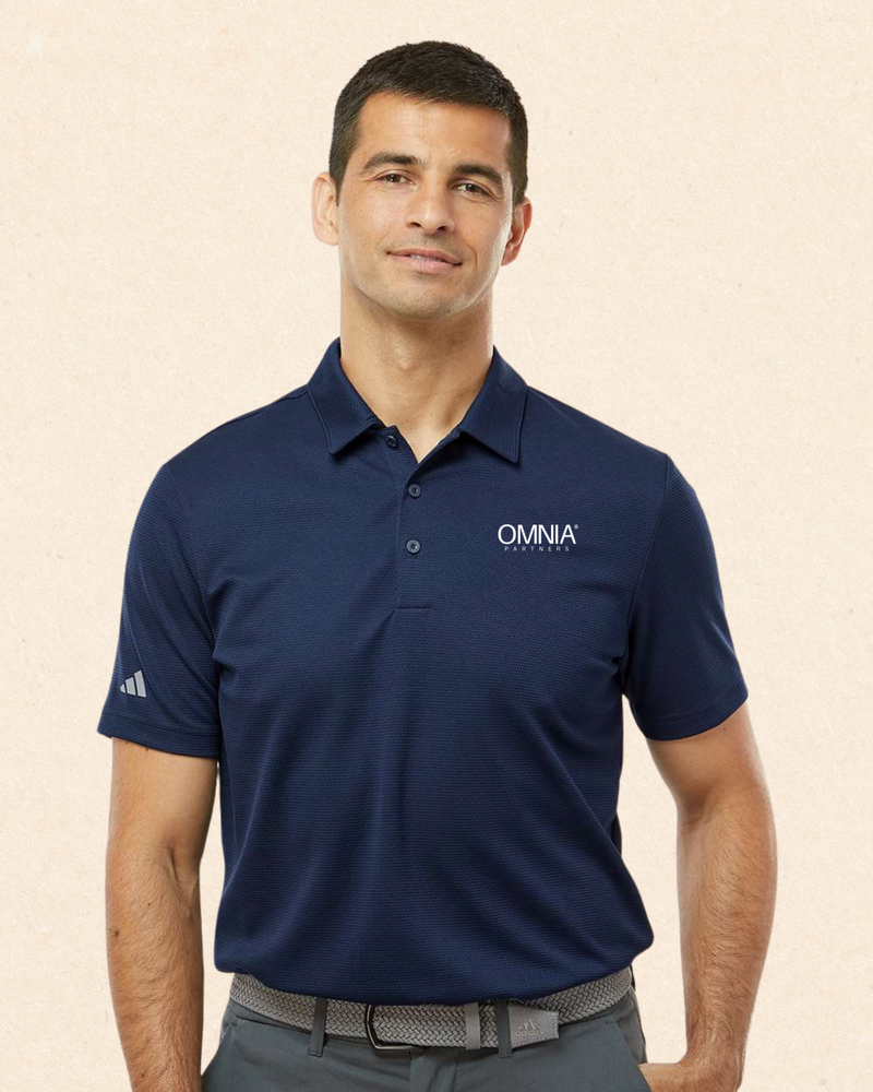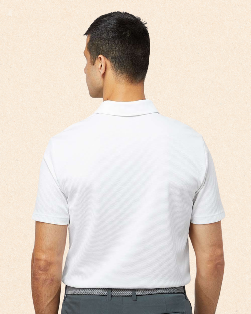 Adidas Micro Pique Polo ul)4.7 oz./yd2, 100% recycled polyester pique. Micro dot texture. Self-collar. Three-button placket. Contrast adidas logo on right sleeve. This product meets the following Sustainable Style subcategory:Sustainable Materials: contains 100% recycled polyester