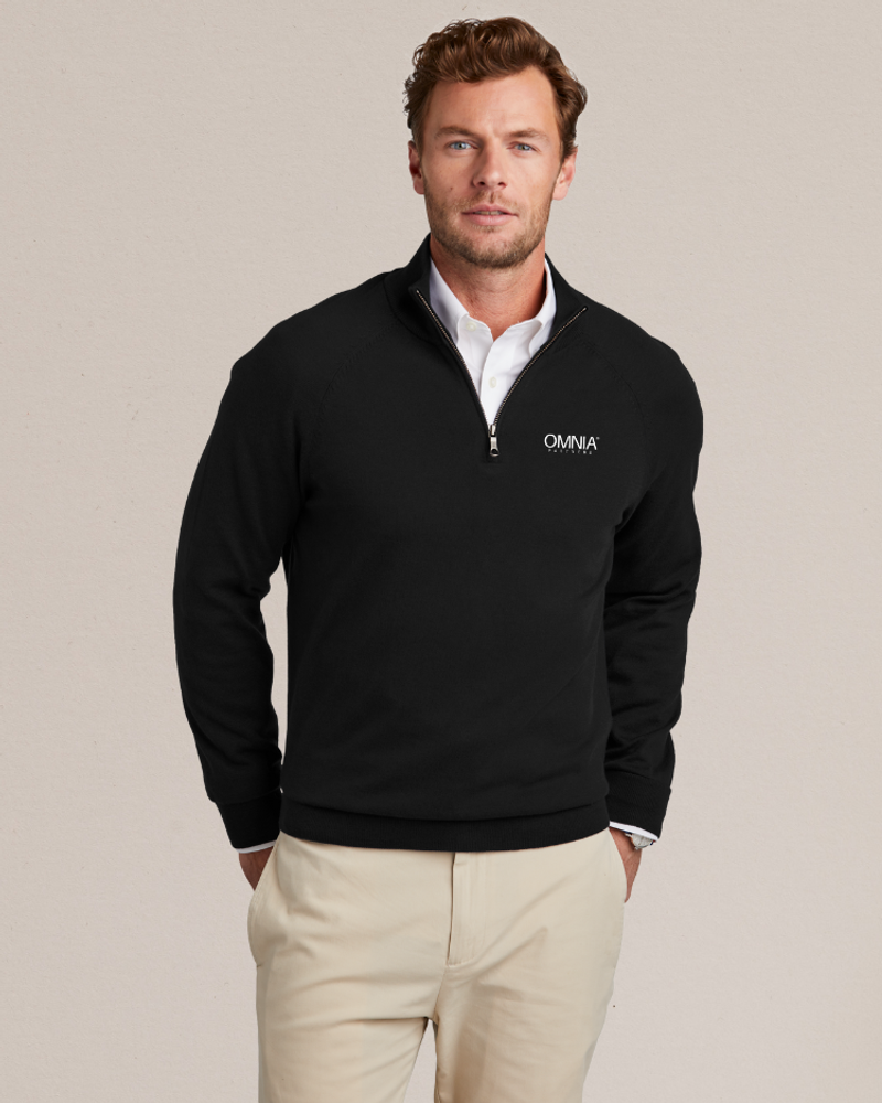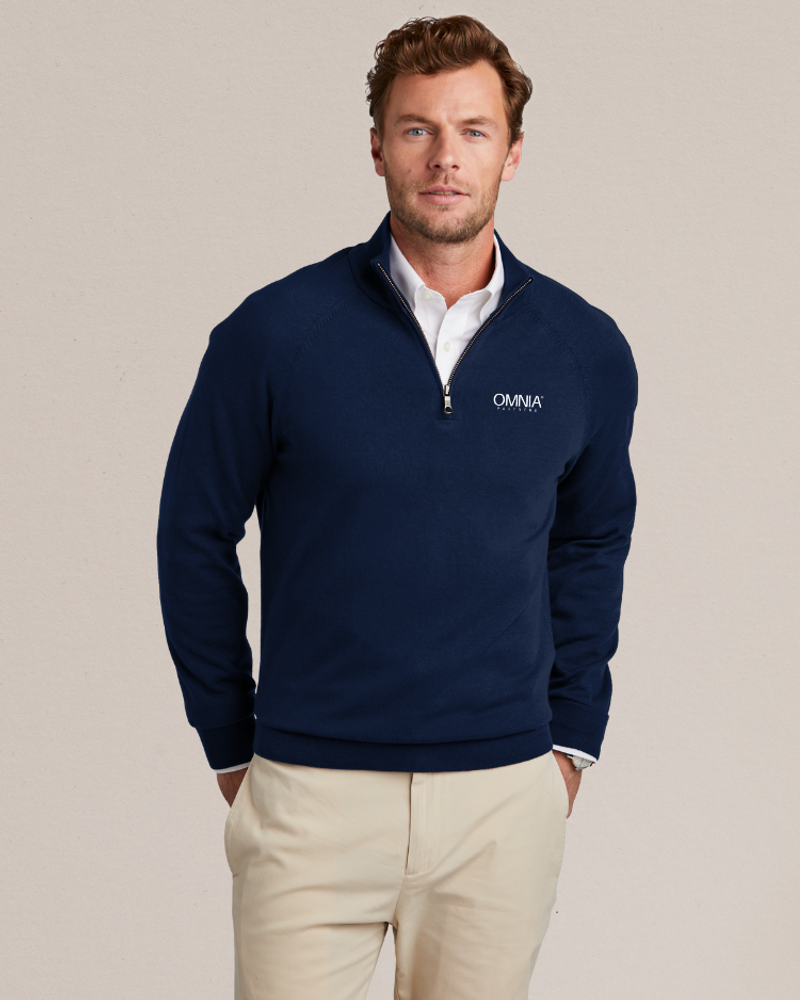 Brooks Brothers Cotton Stretch 1/4-Zip Sweater With a classic look and a comfortable fit, this sweater is sure to be a favorite throw-on-and-go option for any event. 70/30 pima cotton/nylon Full-fashioned throughout 1x1 rib neck, cuffs and hem 1/4-zip cadet collar Fully fashioned raglan sleeves Antique silver zipper pull with Brooks Brothers logo.